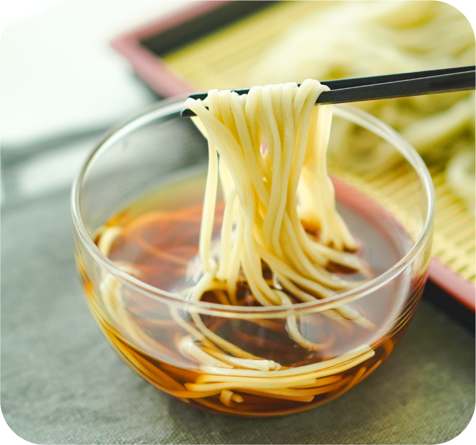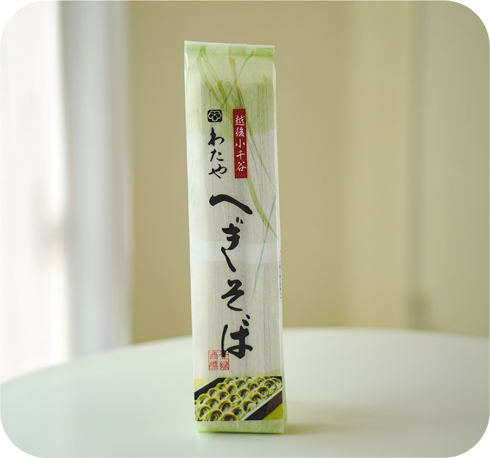 新潟県・魚沼地方発祥の布海苔(ふのり)をつなぎに使った、強いコシとつるりとした喉ごしが特徴の郷土そば。長年愛され続ける故郷「小千谷」の味。「へぎそばを全国に広めたい」その一心で、のどごしにとことんこだわった乾麺を作りました。