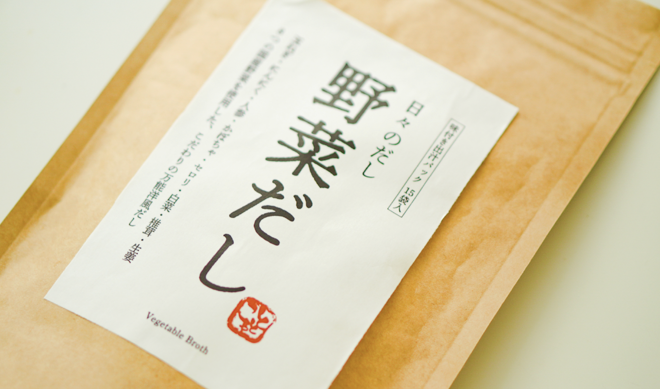 今回使うこととや「野菜だし」は、国産野菜8種だけを使ったやさしい旨みの洋風だし。